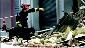 cafes and restaurants. Several buildings collapsed while others suffered structural damage with real possibility of further collapses. Taskforce One responded from Palmerston North including Sue Chesterfield and her dog Nugget. While en route information indicated that no one was trapped
