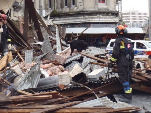 or missing, but Nugget and Sue remained on site as the Technicians and Engineers worked to stabilize buildings because of the risk of further collapse.